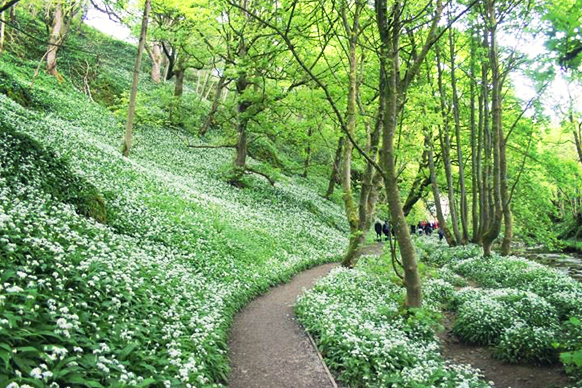 Follow the path as it winds its way deeper into the woods surrounded by swathes of wild Garlic flowers before it comes to a dramatic end at the picturesque Janet’s Foss, a stunning pool and water fall where legend has it a fairy queen used to inhabit one of the caves at the rear of the pool.