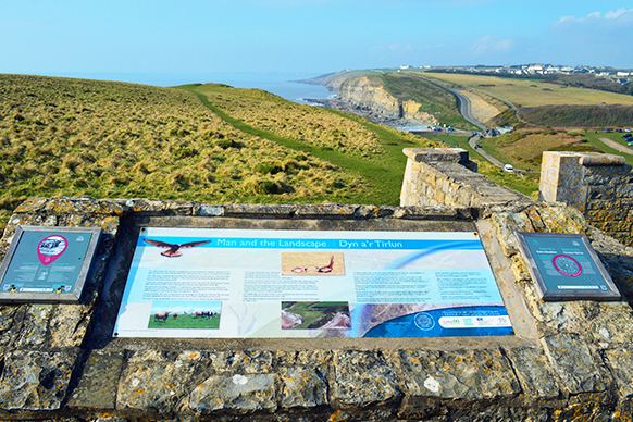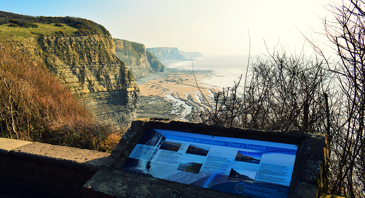 Whichever route you decide to take, you will reach a viewing area overlooking a bay. There is an information board explaining the geology of the cliffs and bay.