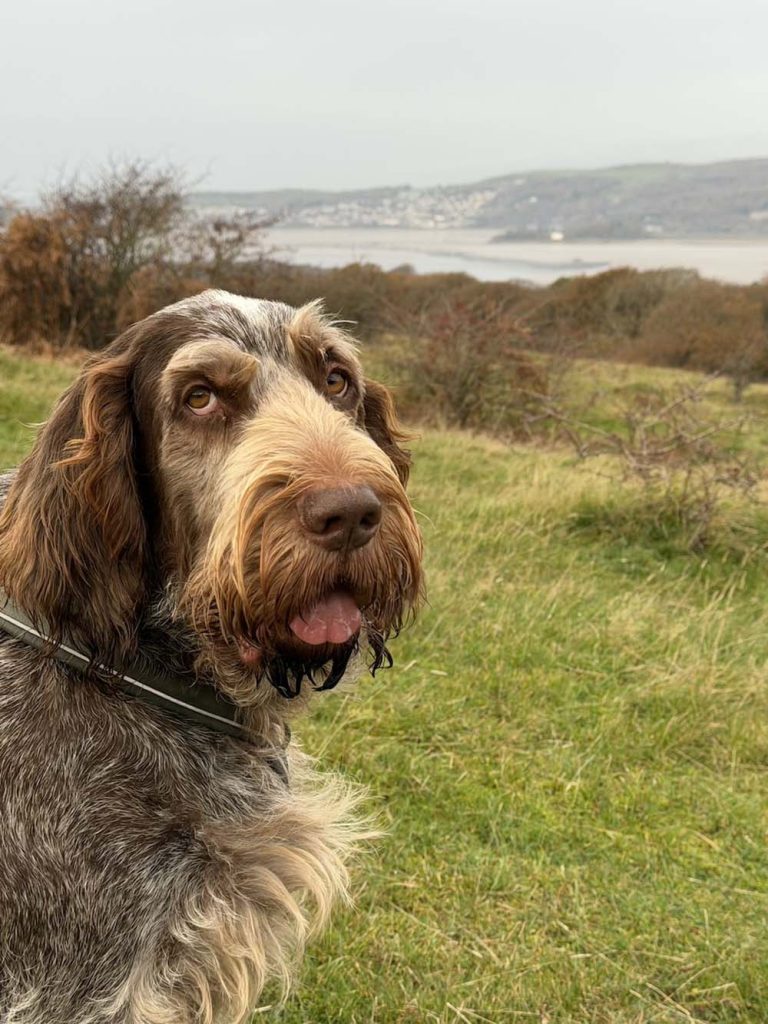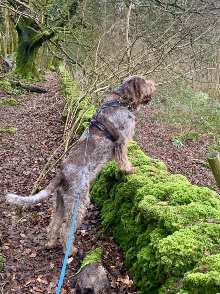 Elmo’s such a character, he’s always making us laugh. He’s a big loveable goof. He has a lot of enthusiasm and is full of joy. He’s very sociable too. He loves people and other dogs and wants to meet and greet everyone, so a walk always takes longer than you think it should! His breed (Italian Spinone) are natural scenting dogs, so he’s always got his nose to the ground exploring who, or what, else has been there. Consequently, his favourite walks are those with lots of variety.