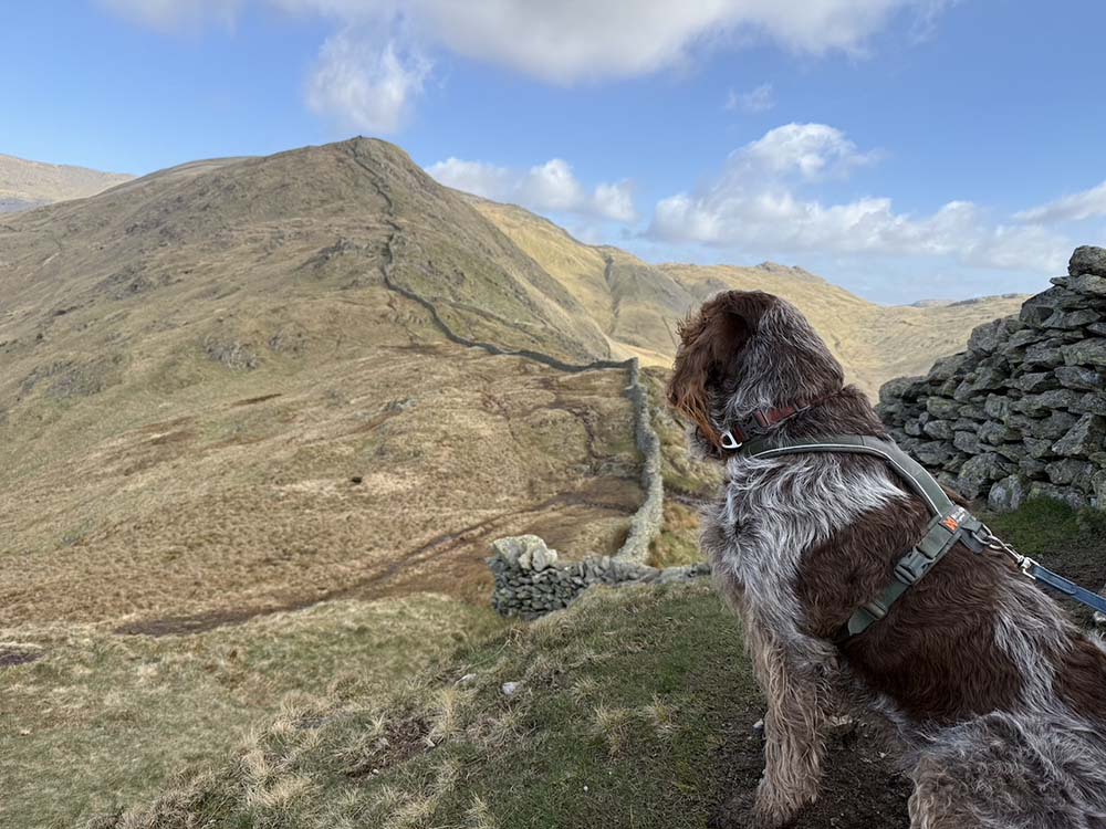 Terrain is important too. We tend to assume that dogs are agile on their feet and are naturally aware of hazards such as big drops. The reality is that some are much more so than others. If the environment is unfamiliar to them, then this increases the risks. Despite his experience of the Lakes, Elmo tends to be over-confident and just a bit clumsy, so we try to pick walks that avoid narrow ridges, and we keep him close when on steep ground.