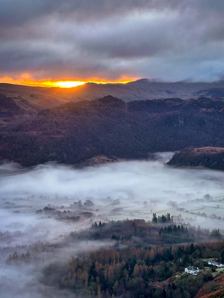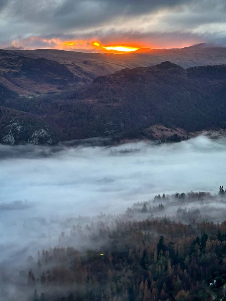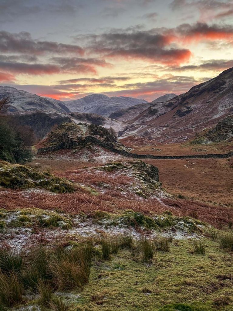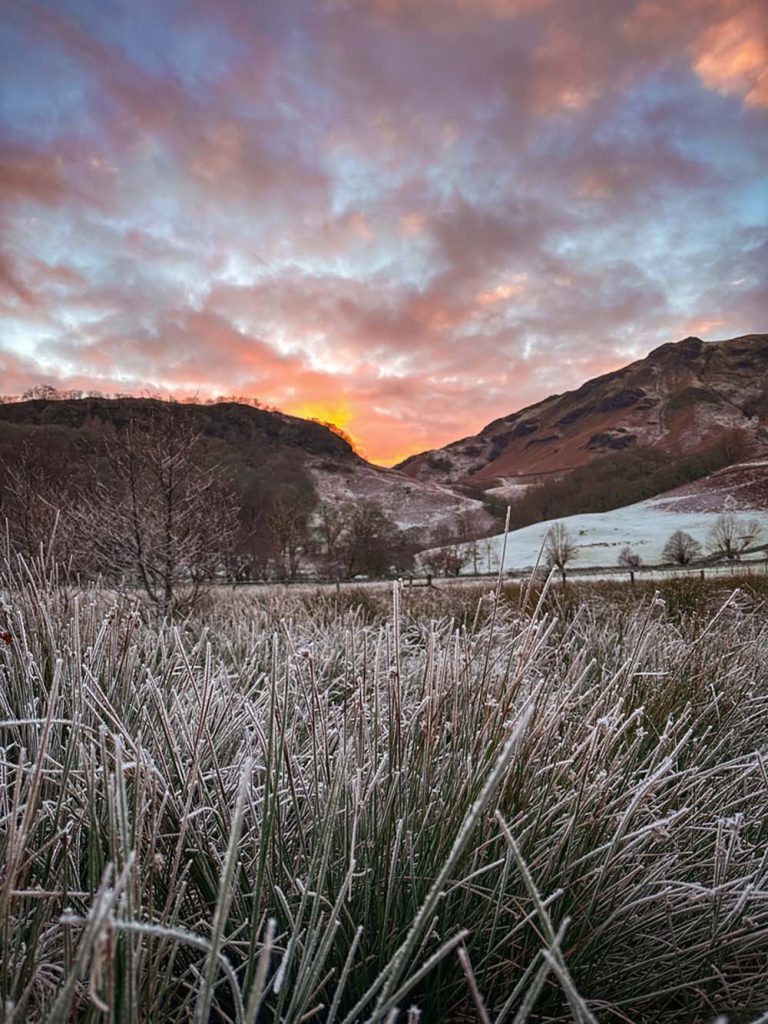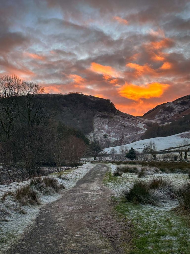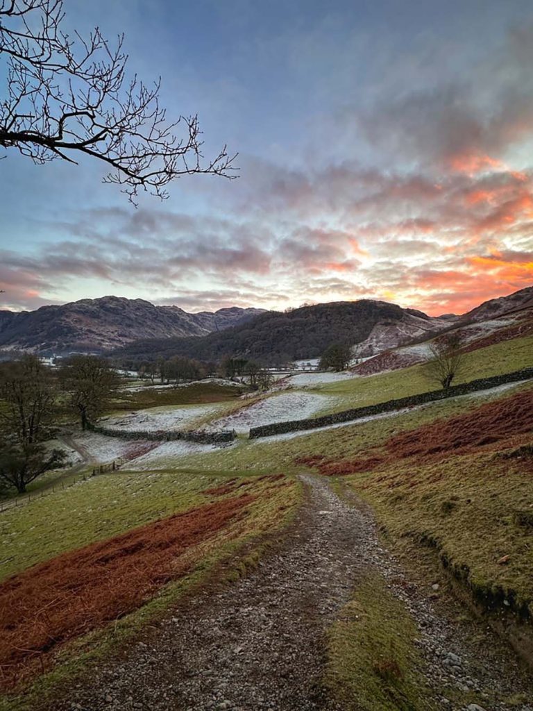 There’s a mini scramble half-way up, so make sure you have microspikes with you, in case it’s icy. There is a path to the left which means you can avoid some of it. Once you’re at the top, the views over Derwentwater are lovely, especially with the sun rising more south east in winter, across the lake. Add on Maiden Moor, the next peak along (out and back) to extend the hike, and drop down between Maiden Moor and Catbells to skirt the base of the peaks on the path next to the road, back to the start.