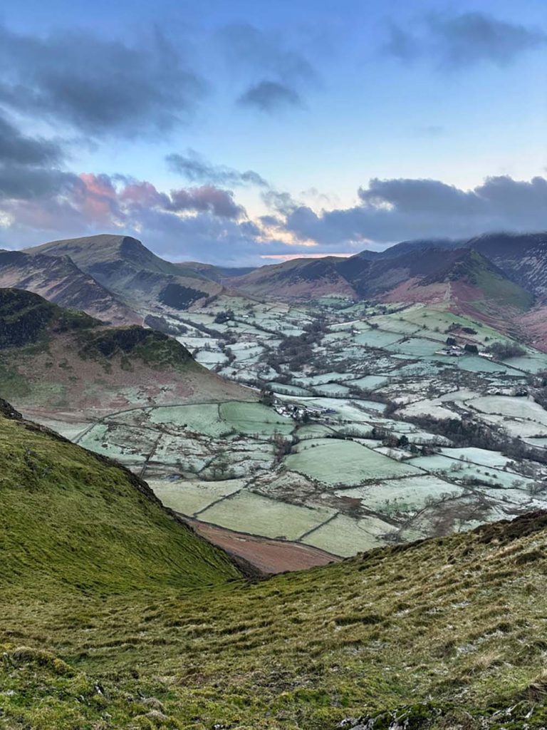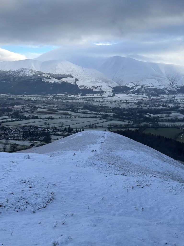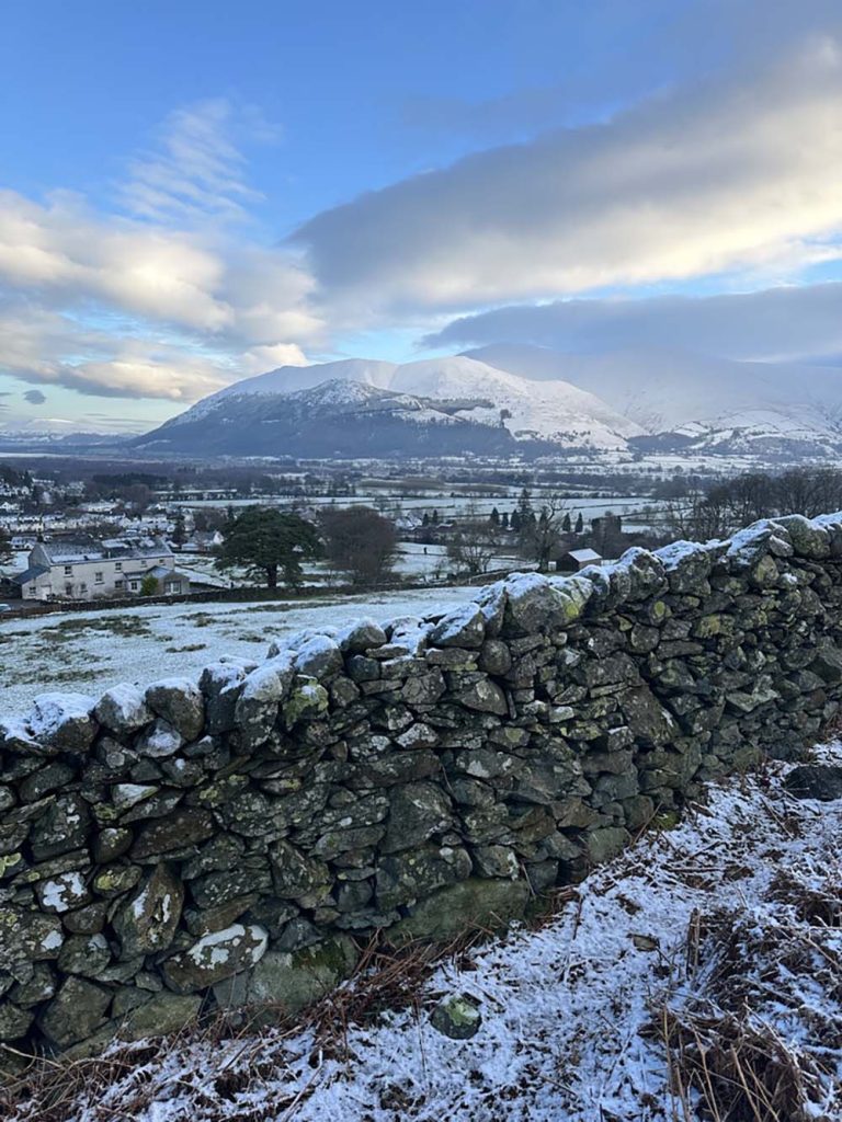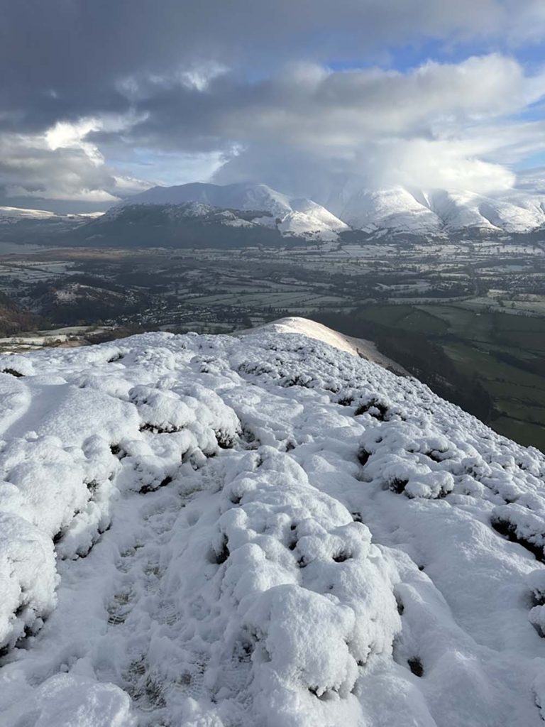 This area nestles up the market town of Keswick, which makes an ideal base for your visit, and easy to access from the M6/A66 in winter. The views from Keswick itself are stunning, looking back to the looming Skiddaw peak to the north of the town (when it’s not topped with cloud), or across Derwentwater to the Newlands valley.