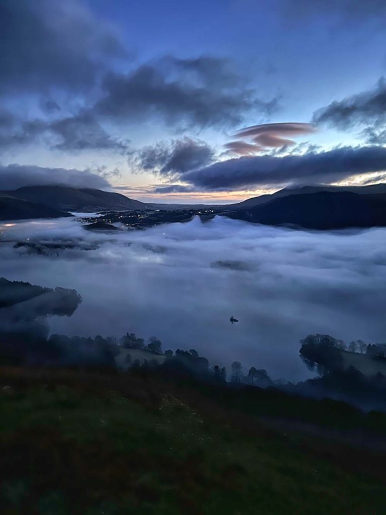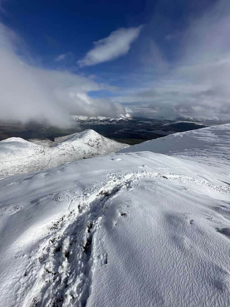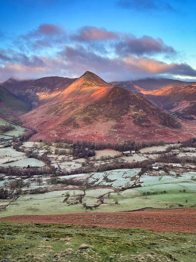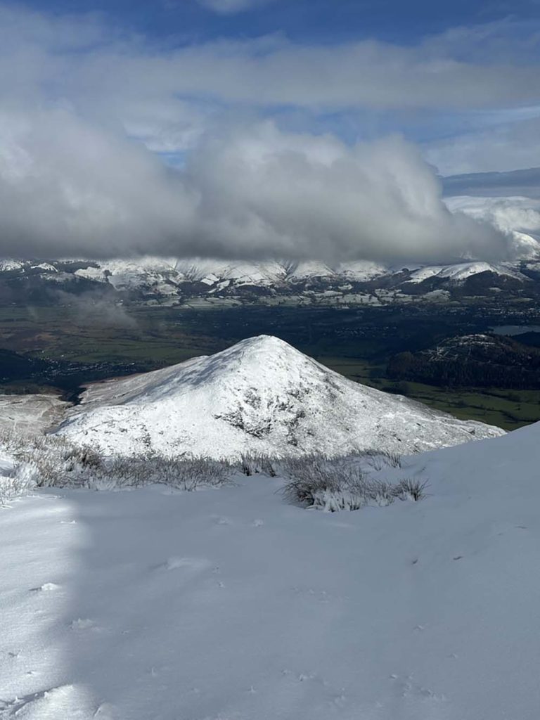 This area nestles up the market town of Keswick, which makes an ideal base for your visit, and easy to access from the M6/A66 in winter. The views from Keswick itself are stunning, looking back to the looming Skiddaw peak to the north of the town (when it’s not topped with cloud), or across Derwentwater to the Newlands valley.