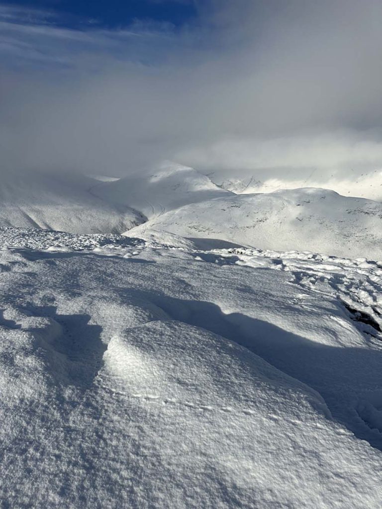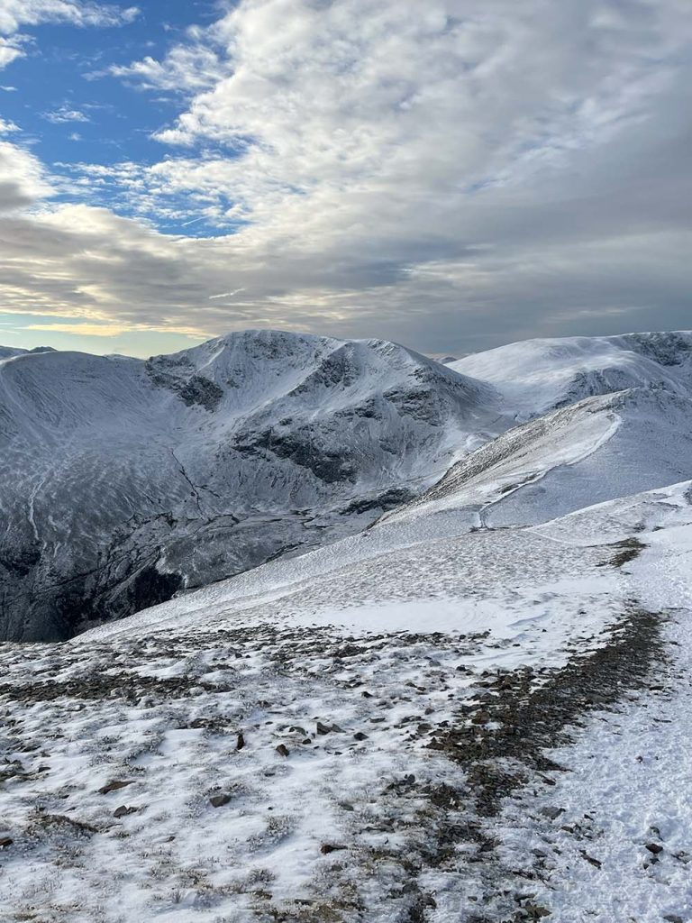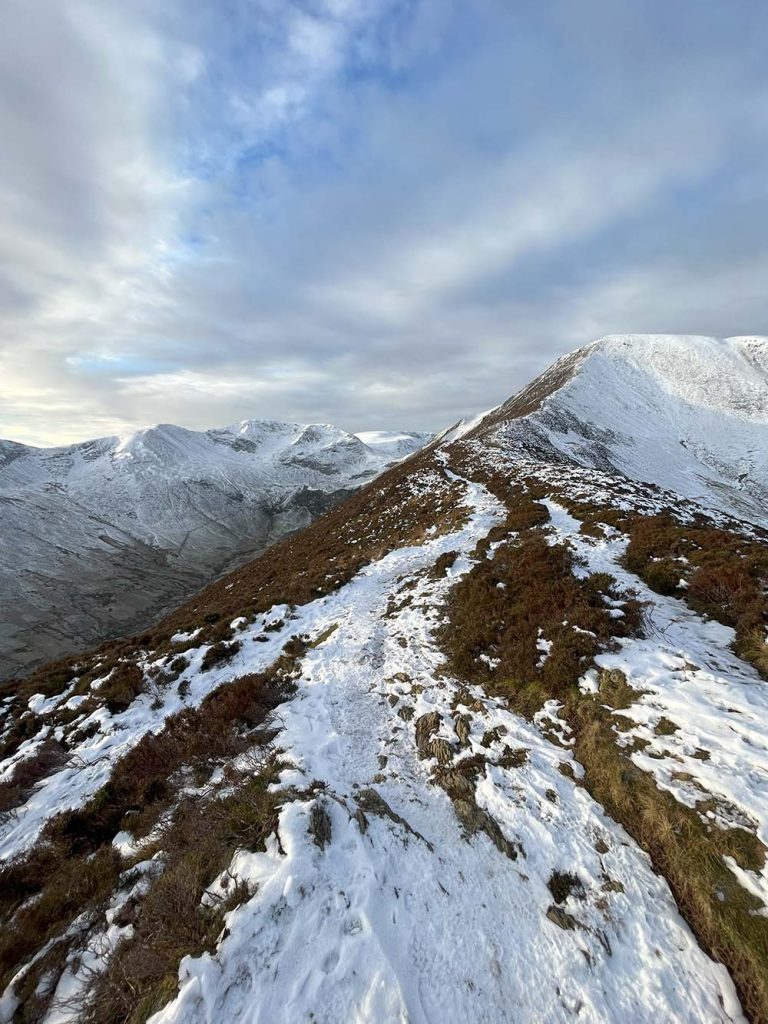 In winter, it’s a landscape of rolling white hills and interesting snowy peaks. Causey Pike always looks great from a distance, with the distinguishable lumps of its summit. This horseshoe is the basic route (minimum peaks) but others can be added on to extend, such as Grasmoor, Wandope, Scar Crags, Causey Pike and Barrow. In winter, and especially in snowy conditions, hiking can take a lot longer though – so keep that in mind!