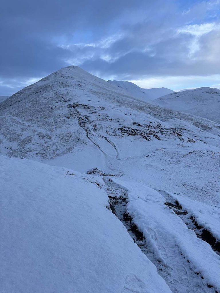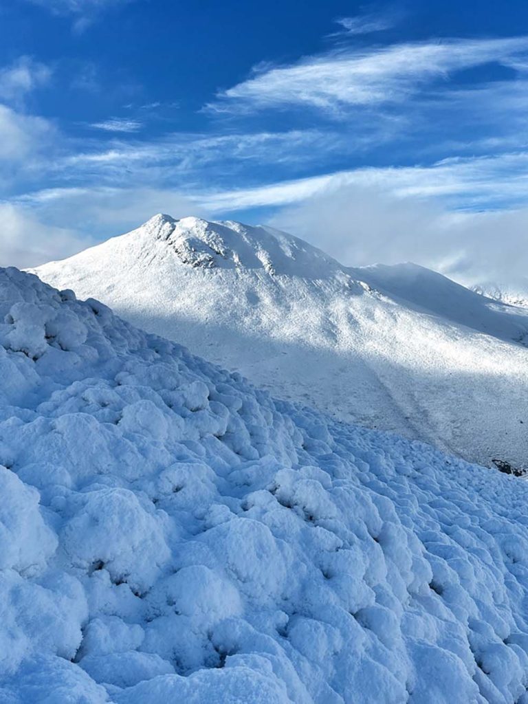 Microspikes are always recommended for icy paths (or crampons and ice axe for full winter conditions), with the necessary skills to use them. Ensure you check weather carefully before you set off, and pack enough layers to keep warm (accounting for it being colder on higher ground) and food and drink. Make sure you’ve planned the route, downloaded it on the OS App and have a paper copy for reference.