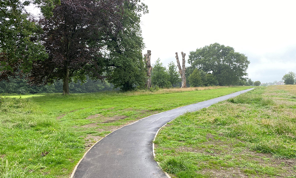 Below is a photo taken on site. Here, I’m taking survey points along the edge of a new path.