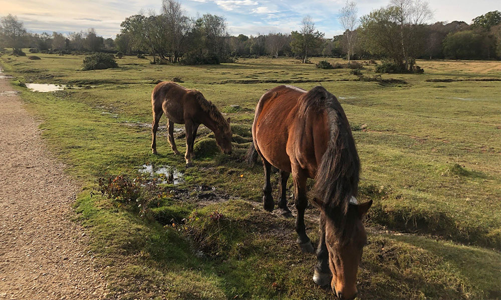 This walks starts just round the corner from the centre of Brockenhurst village heading out over Black Knowl on a gravel path towards Highland Water which has a stream perfect for a paddle for dogs or people! On Black Knowl there is always wildlife to be seen, particularly New Forest Ponies and if you go at the right time of year and are lucky deer and pigs! Then you walk round the top of Block Knowl to Ober Corner. Here you shortly join a road (limited traffic as only an access point for a campsite), before heading off into the trees at Aldridge Inclosure. After a little bit, you turn off to cross Ober water and head across Whitefield Moor (where there are more ponies). Then finally you head back to the starting back into Brockenhurst.