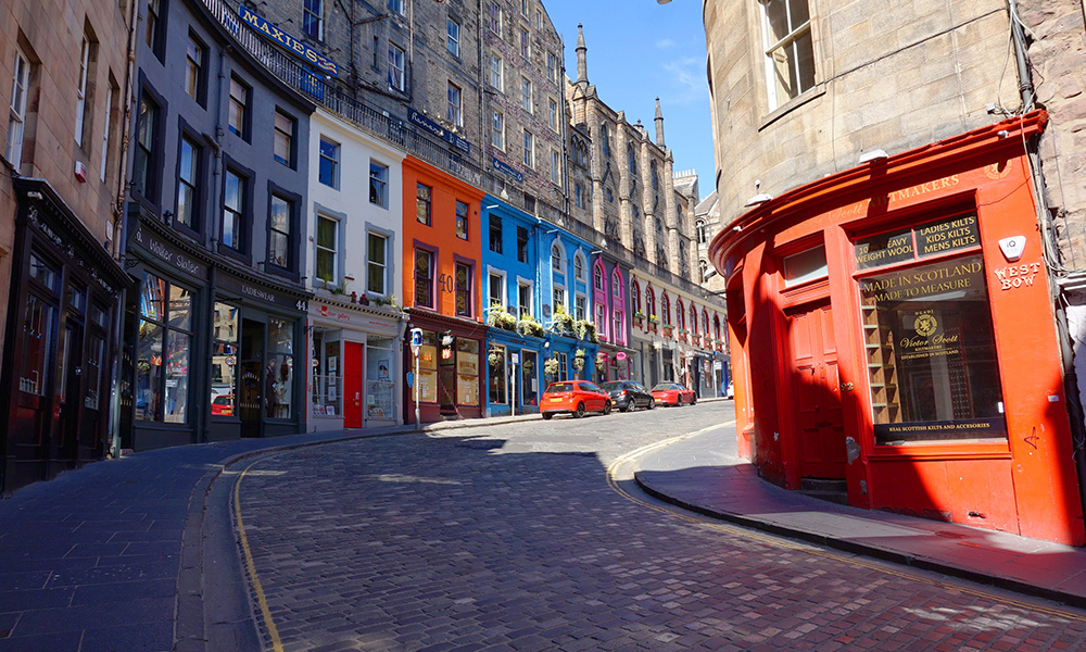 Starting at Waverley Station, make your way up to the famous Royal Mile via the beautiful, winding Cockburn Street. Grab a coffee and head up to Edinburgh Castle, at the top of the Royal Mile. After we’ve taken in the views over Princes Street, over to Arthur’s Seat and across to the Pentlands, we’re going to take a detour from the Mile and head down to one of Edinburgh’s most picturesque areas via one of its most picturesque streets – Victoria Street.