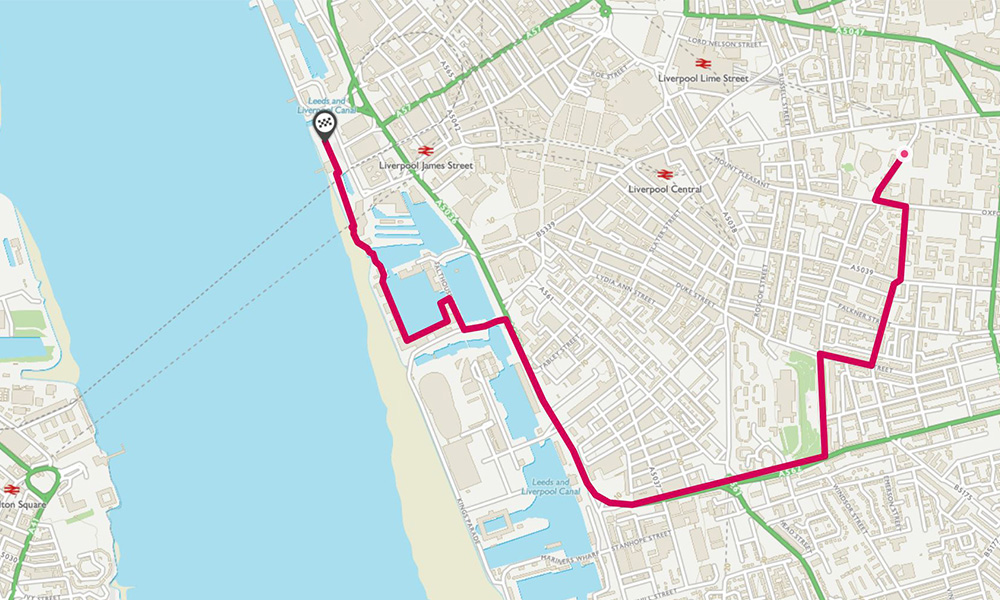 Liverpool city walk in OS Maps