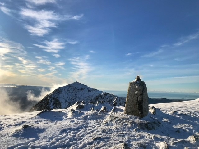 Here’s a classic Trig Pic of me on top of the summit Trig of Moel Hebog in the wintry depths of early January. I don’t look very stable as it was pretty icy and windy and wanted to get off it ASAP!