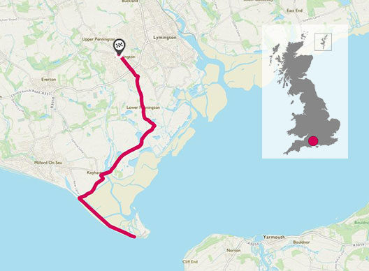 Pennington to Hurst Castle Loop. Just under 10 miles of easy going bike trail, quiet roads and shingle/pebble beach. A great all year ride, suitable for families however the final spit section maybe a challenge for smaller legs and wheels.