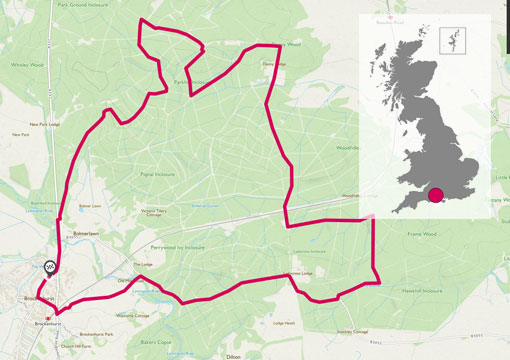 Brockenhurst New Forest Loop. Just under 12 miles of easy going forest trails and tarmac. A great all year ride, perfect for families. The route starts and stops in the pretty little town of Brockenhurst.