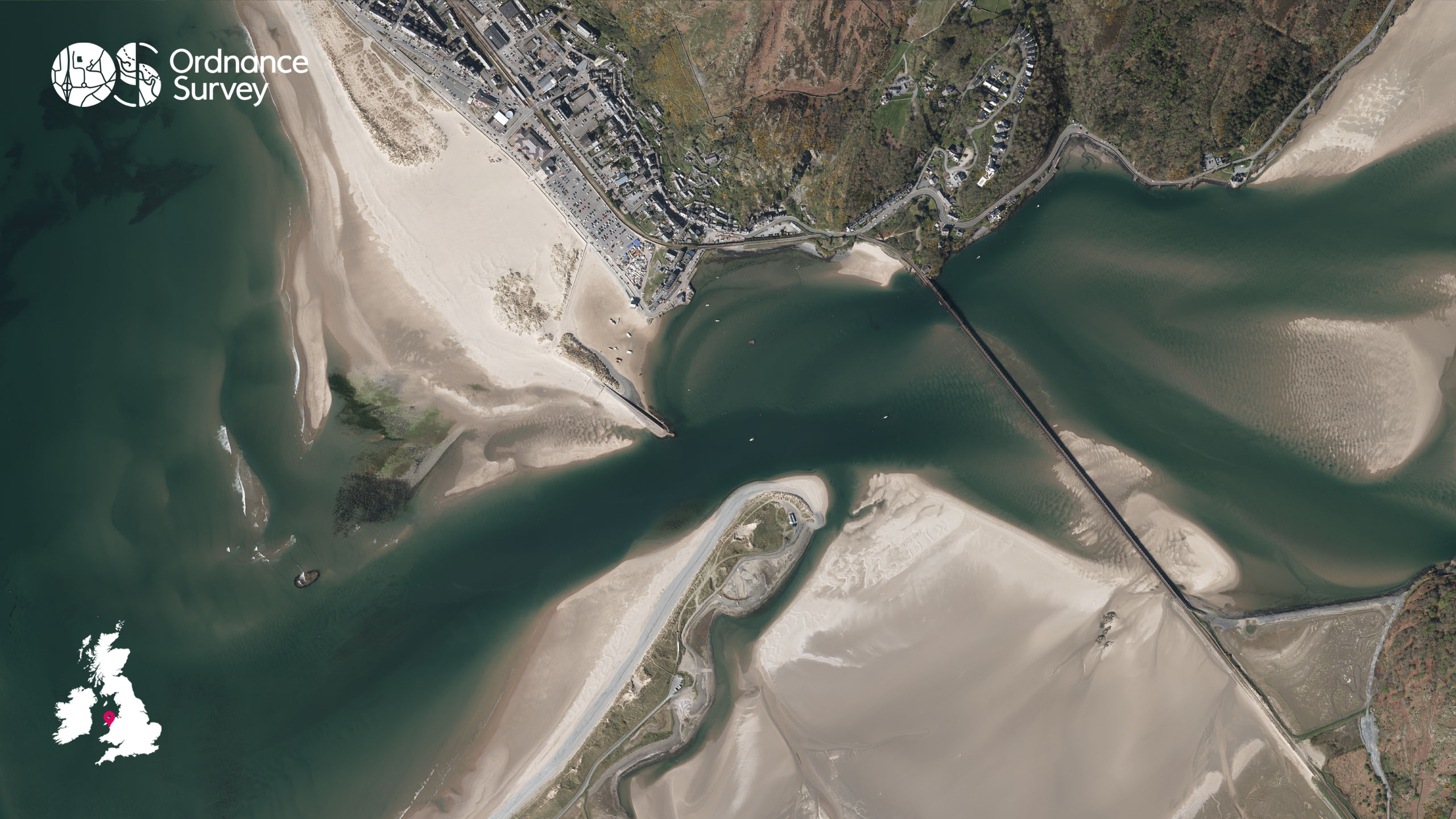 This month we continue with our aerial photography series and to tie in with the new release of our Outstanding Walks Wales/Cymru guidebook, our flying team have selected an aerial image of Barmouth and the Grade II* listed Barmouth Bridge.