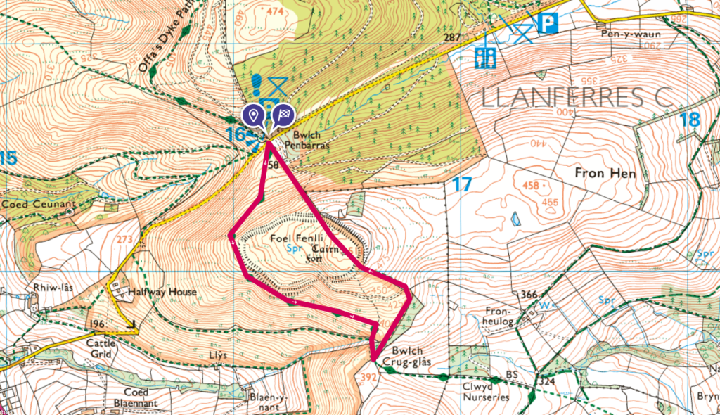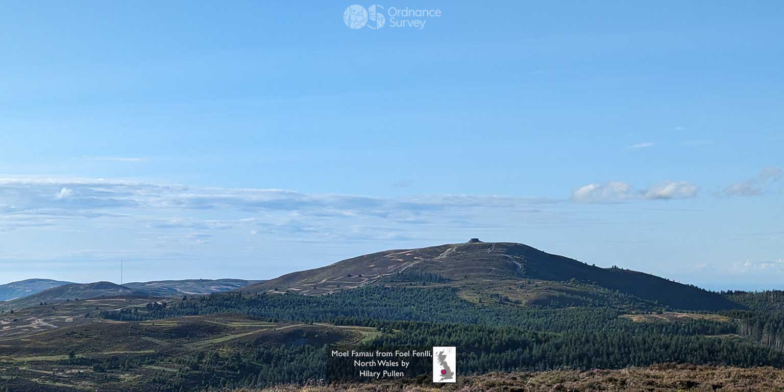 I chose this picture of Moel Famau from Foel Fenlli as this month’s OS Wallpaper as I think it’s a perfect short walk and I really wanted to share the route with you all. If you find yourself in North Wales with an hour or so to spare and you want a quick family and dog friendly walk Foel fenlli is perfect. The car parking is easy, it’s not too strenuous (although the descent is fairly steep) and the best part is that you are turning away from the majority of walkers heading up the more popular Moel Famau.