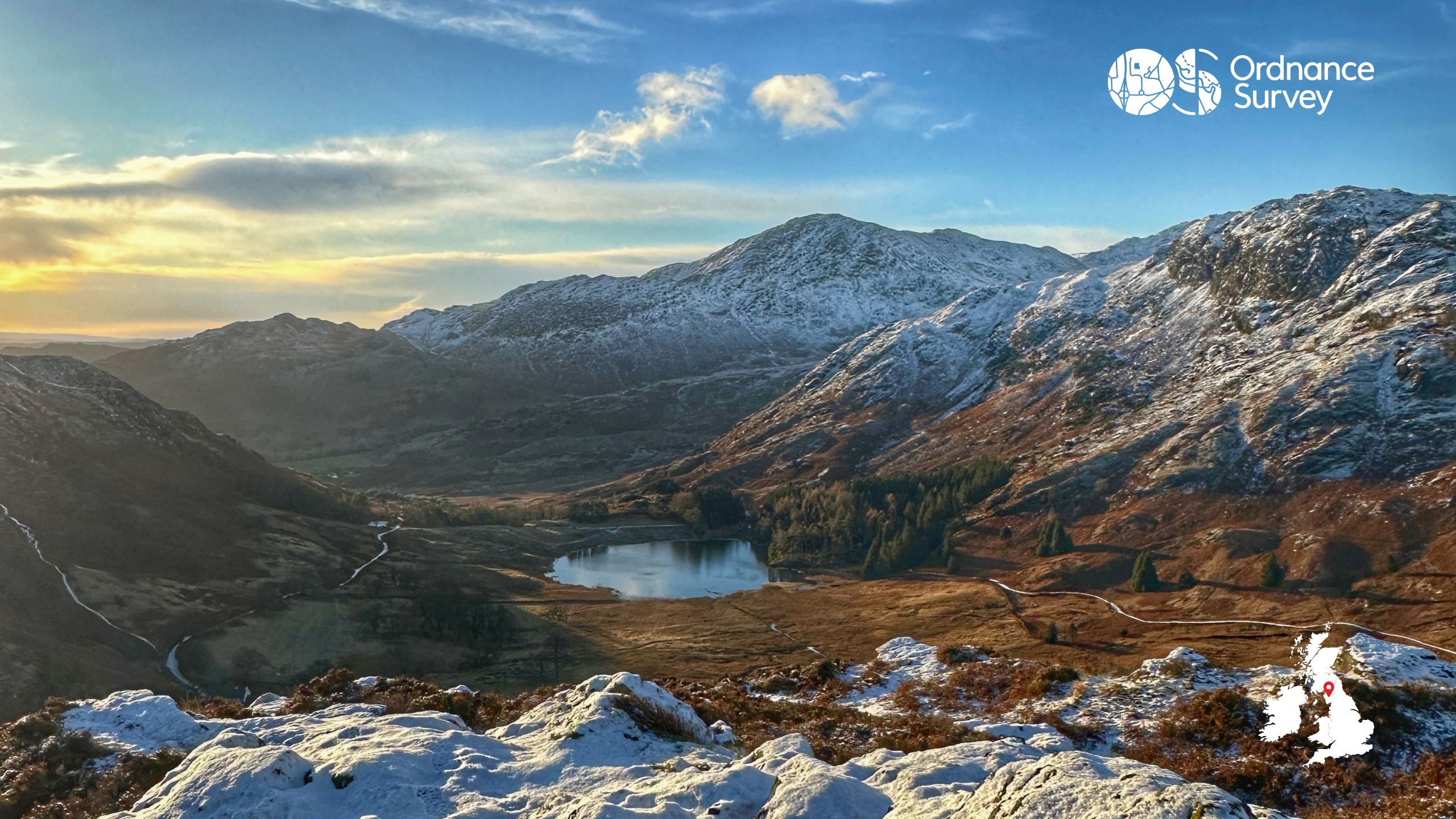 The photo was taken on a walk up to Side Pike in the Langdales, you can see all of the OS Champions 12 Walks od Christmas in this article – Christmas Walk Ideas. Scroll down to grab the free wallpaper.