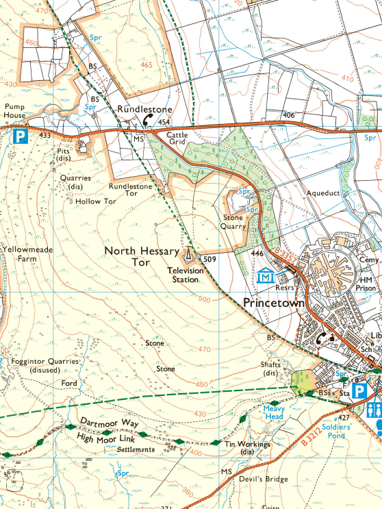 Manmade Landmark: The most striking feature here, obviously, is the remarkable 196-metre high transmitter mast, built in 1955, and still transmitting FM radio and TV signals to the area. It is perhaps Dartmoor’s most recognisable manmade landmark.