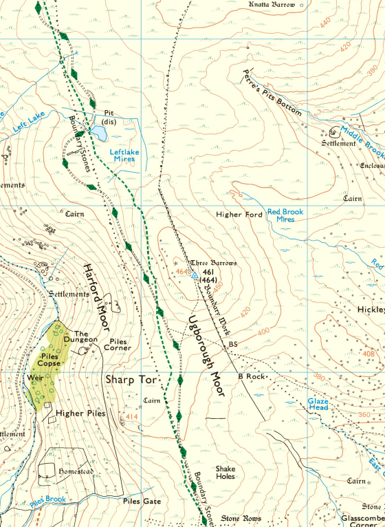 The land here is high moorland. It is on the very southern edge of the two high and remote plateaus that make up Dartmoor, separated by the Dart Valley.