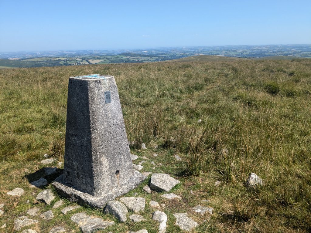 Why ‘Three Barrows’? The name refers to the trio of ancient burial mounds or cairns on its summit. These ‘Barrows’ are huge Bronze Age cairns, the highest of which and closest to this trig point is the largest anywhere on Dartmoor.